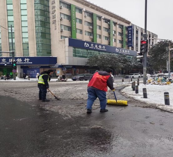此次清雪行动不仅追求“速度”,更注重“精度”与“温度”。针对老旧小区楼道口、残疾人通道等狭窄区域,街道组织公共单位志愿者开展“拉网式”人工细扫,确保“无盲区、无残雪、无隐患”。同时,街道通过网格群实时发布出行提示;在步行街周边的核心路段,清雪行动始终以“保障经营秩序、守护行人安全”为核心,在“速度”之外更凸显商业街区服务精度。针对商铺门前通道、商业步行街、街道组织志愿者开展“地毯式”细扫,确保台阶、坡道、人行横道无积雪残留,为商户开门营业、市民逛街消费扫清障碍。